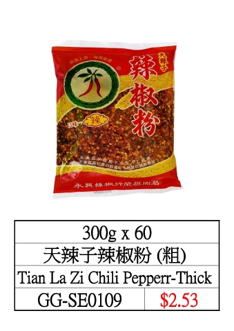300g x 60 天辣子辣椒粉 (粗) Tian La Zi Chili Pepperr-Thick GG-SE0109 $2.53