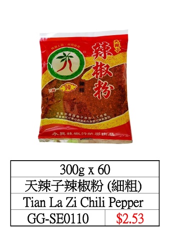 300g x 60 天辣子辣椒粉 (細粗) Tian La Zi Chili Pepper GG-SE0110 $2.53
