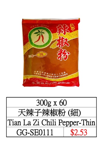 300g x 60 天辣子辣椒粉 (細) Tian La Zi Chili Pepper-Thin GG-SE0111 $2.53