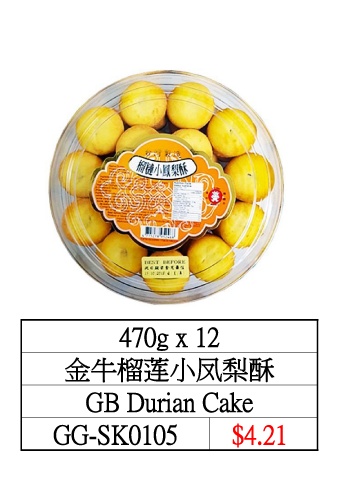 470g x 12 金牛榴莲小凤梨酥 GB Durian Cake GG-SK0105 $4.21