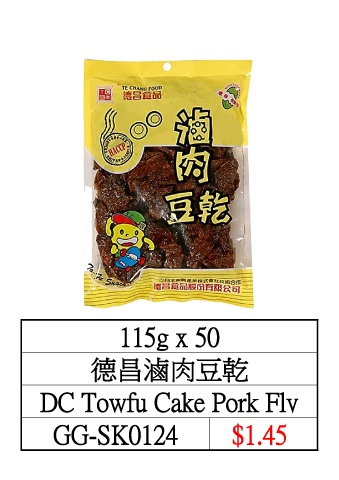 115g x 50 德昌滷肉豆乾 DC Towfu Cake Pork Flv GG-SK0124 $1.45