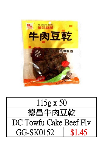 115g x 50 德昌牛肉豆乾 DC Towfu Cake Beef Flv GG-SK0152 $1.45