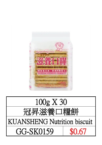100g X 30 冠昇滋養口糧餅 KUANSHENG Nutrition biscuit GG-SK0159 $0.67