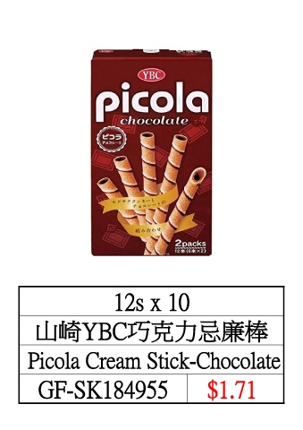 12s x 10 山崎YBC巧克力忌廉棒 Picola Cream Stick-Chocolate GF-SK184955 $1.71