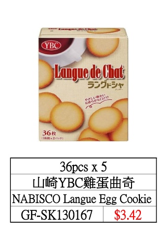36pcs x 5 山崎YBC雞蛋曲奇 NABISCO Langue Egg Cookie GF-SK130167 $3.42