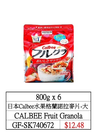 800g x 6 日本Calbee水果格蘭諾拉麥片-大 CALBEE Fruit Granola GF-SK740672 $12.48