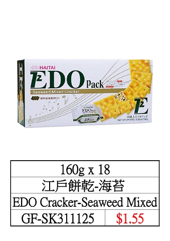 160g x 18 江戶餅乾-海苔 EDO Cracker-Seaweed Mixed GF-SK311125 $1.55