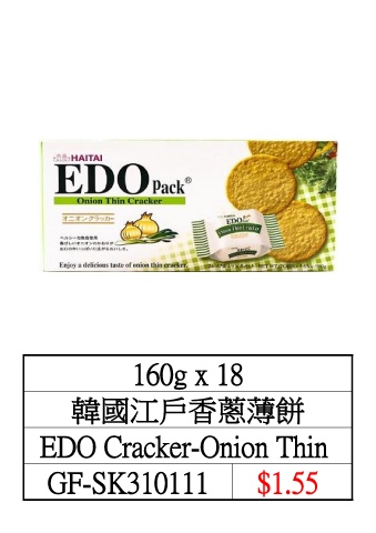 160g x 18 韓國江戶香蔥薄餅 EDO Cracker-Onion Thin GF-SK310111 $1.55