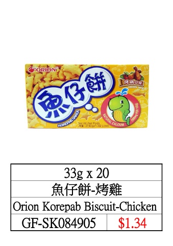 33g x 20 魚仔餅-烤雞 Orion Korepab Biscuit-Chicken GF-SK084905 $1.34