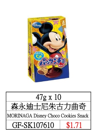 47g x 10 森永迪士尼朱古力曲奇 MORINAGA Disney Choco Cookies Snack GF-SK107610 $1.71