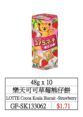 48g x 10 樂天可可草莓熊仔餅 LOTTE Cocoa Koala Biscuit -Strawberry GF-SK133062 $1.71