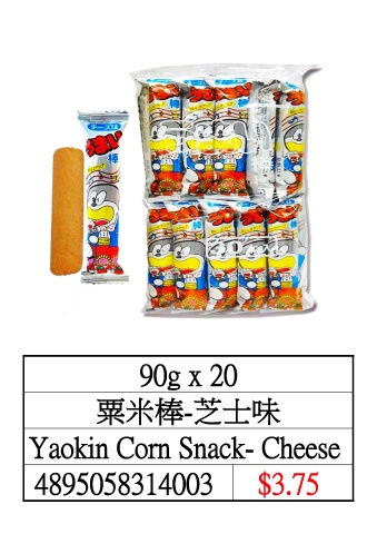 90g x 20 粟米棒-芝士味 Yaokin Corn Snack- Cheese 4895058314003 $3.75