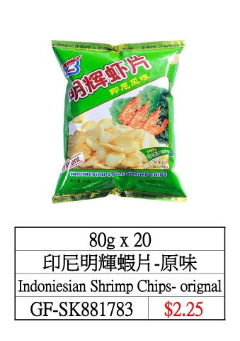 80g x 20 印尼明輝蝦片-原味 Indoniesian Shrimp Chips- orignal GF-SK881783 $2.25