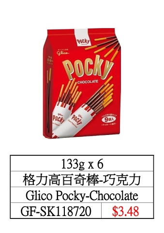 133g x 6 格力高百奇棒-巧克力 Glico Pocky-Chocolate GF-SK118720 $3.48