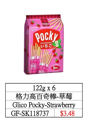 122g x 6 格力高百奇棒-草莓 Glico Pocky-Strawberry GF-SK118737 $3.48