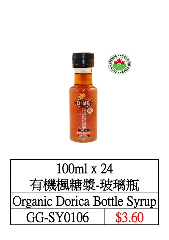 100ml x 24 有機楓糖漿-玻璃瓶 Organic Dorica Bottle Syrup GG-SY0106 $3.60