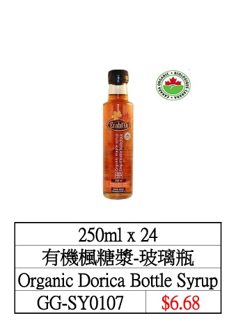250ml x 24 有機楓糖漿-玻璃瓶 Organic Dorica Bottle Syrup GG-SY0107 $6.68