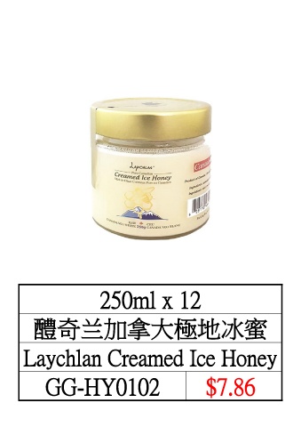 250ml x 12 醴奇兰加拿大極地冰蜜 Laychlan Creamed Ice Honey GG-HY0102 $7.86
