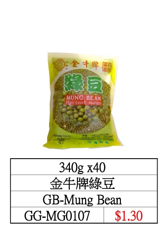 340g x40 金牛牌綠豆 GB-Mung Bean GG-MG0107 $1.30