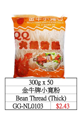 300g x 50 金牛牌小寛粉 Bean Thread (Thick) GG-NL0103 $2.43