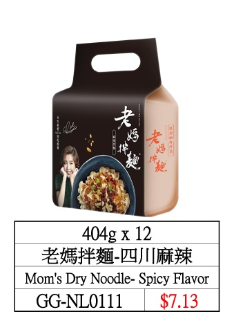 404g x 12 老媽拌麵-四川麻辣 Mom's Dry Noodle- Spicy Flavor GG-NL0111 $7.13