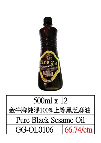 500ml x 12 金牛牌純淨100%上等黑芝麻油 Pure Black Sesame Oil GG-OL0106 66.74/ctn