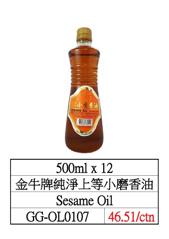 500ml x 12 金牛牌純淨上等小磨香油 Sesame Oil GG-OL0107 46.51/ctn