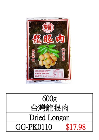 600g 台灣龍眼肉 Dried Longan GG-PK0110 $17.98