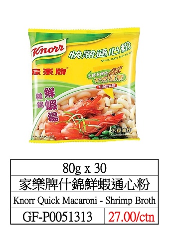 80g x 30 家樂牌什錦鮮蝦通心粉 Knorr Quick Macaroni - Shrimp Broth GF-P0051313 27.00/ctn