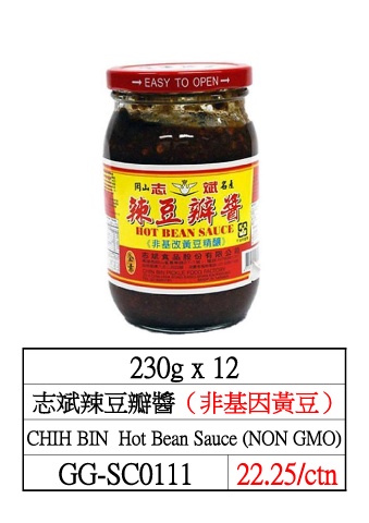 230g x 12 志斌辣豆瓣醬(非基因黃豆) CHIH BIN Hot Bean Sauce (NON GMO) GG-SC0111 22.25/ctn
