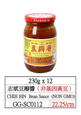 230g x 12 志斌豆瓣醬(非基因黃豆) CHIH BIN Bean Sauce (NON GMO) GG-SC0112 22.25/ctn