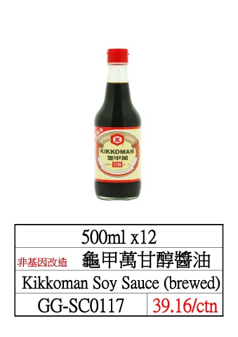 500ml x12 非基因改造 龜甲萬甘醇醬油 Kikkoman Soy Sauce (brewed) GG-SC0117 39.16/ctn