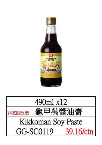 490ml x12 非基因改造 龜甲萬醬油膏 Kikkoman Soy Paste GG-SC0119 39.16/ctn