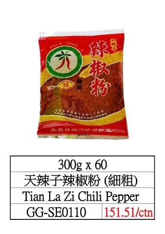 300g x 60 天辣子辣椒粉 (細粗) Tian La Zi Chili Pepper GG-SE0110 151.51/ctn
