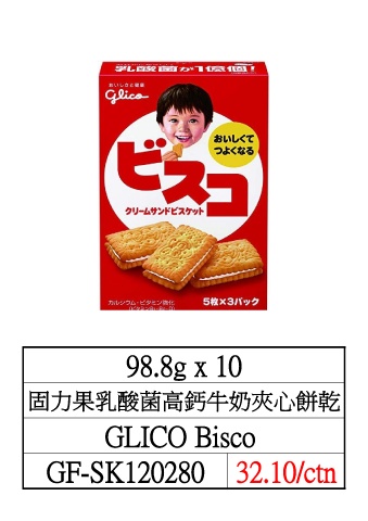 98.8g x 10 固力果乳酸菌高鈣牛奶夾心餅乾 GLICO Bisco GF-SK120280 32.10/ctn