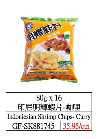 80g x 16 印尼明輝蝦片-咖哩 Indoniesian Shrimp Chips- Curry GF-SK881745 35.95/ctn
