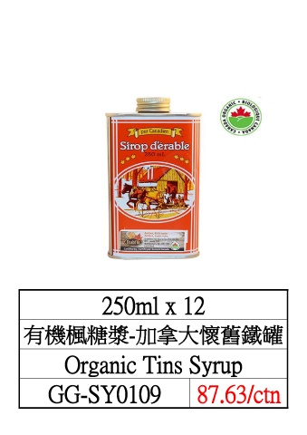 250ml x 12 有機楓糖漿-加拿大懷舊鐵罐 Organic Tins Syrup GG-SY0109 87.63/ctn