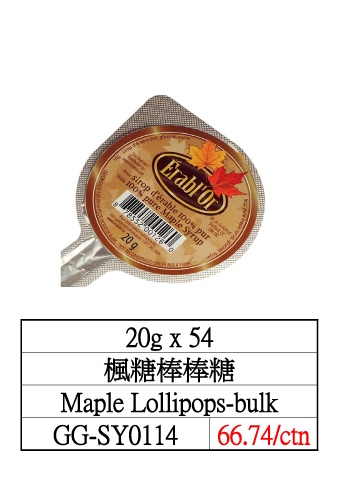20g x 54 楓糖棒棒糖 Maple Lollipops-bulk GG-SY0114 66.74/ctn