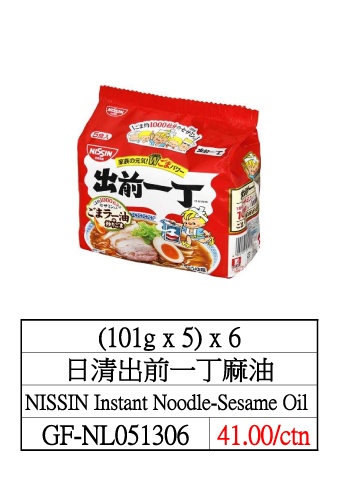 (101g x 5) x 6 日清出前一丁麻油 NISSIN Instant Noodle-Sesame Oil GF-NL051306 41.00/ctn