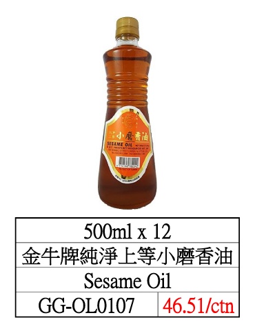 500ml x 12 金牛牌純淨上等小磨香油 Sesame Oil GG-OL0107 46.51/ctn