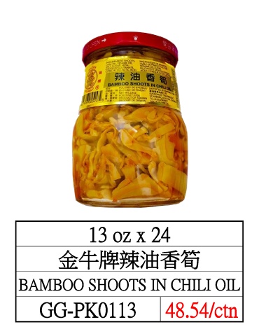 13 oz x 24 金牛牌辣油香筍 BAMBOO SHOOTS IN CHILI OIL GG-PK0113 48.54/ctn