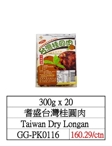 300g x 20 耆盛台灣桂圓肉 Taiwan Dry Longan GG-PK0116 160.29/ctn