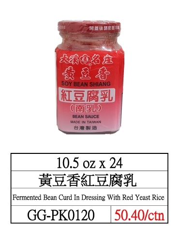 10.5 oz x 24 黃豆香紅豆腐乳 Fermented Bean Curd In Dressing With Red Yeast Rice GG-PK0120 50.40/ctn