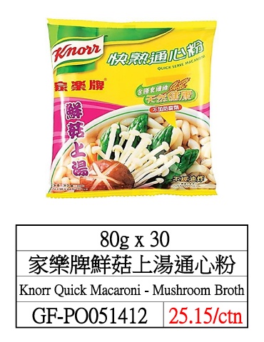80g x 30 家樂牌鮮菇上湯通心粉 Knorr Quick Macaroni - Mushroom Broth GF-PO051412 25.15/ctn