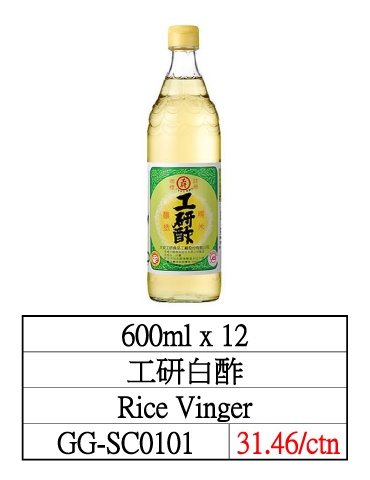 600ml x 12 工研白酢 Rice Vinger GG-SC0101 31.46/ctn