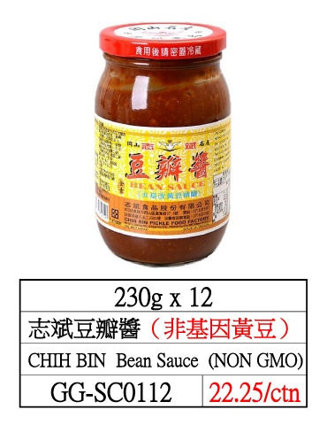 230g x 12 志斌豆瓣醬(非基因黃豆) CHIH BIN Bean Sauce (NON GMO) GG-SC0112 22.25/ctn