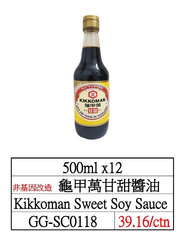 500ml x12 非基因改造 龜甲萬甘甜醬油 Kikkoman Sweet Soy Sauce GG-SC0118 39.16/ctn