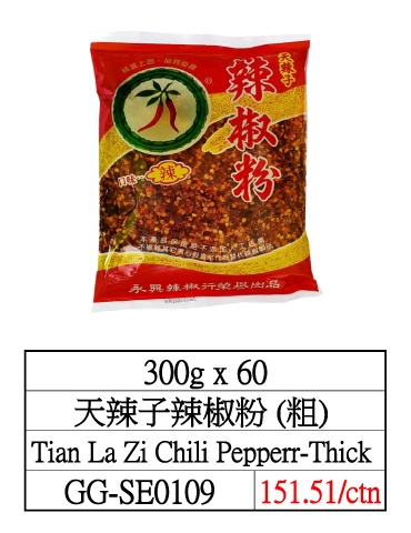 300g x 60 天辣子辣椒粉 (粗) Tian La Zi Chili Pepperr-Thick GG-SE0109 151.51/ctn