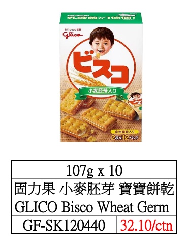 107g x 10 固力果 小麥胚芽 寶寶餅乾 GLICO Bisco Wheat Germ GF-SK120440 32.10/ctn