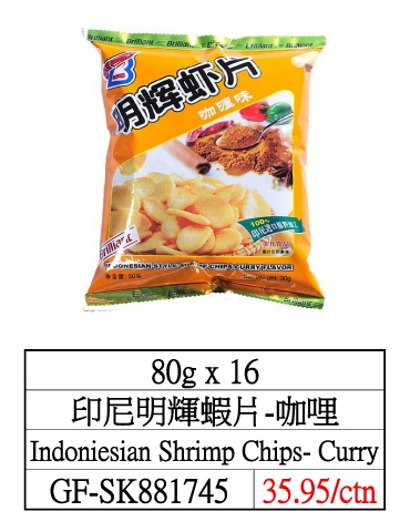 80g x 16 印尼明輝蝦片-咖哩 Indoniesian Shrimp Chips- Curry GF-SK881745 35.95/ctn